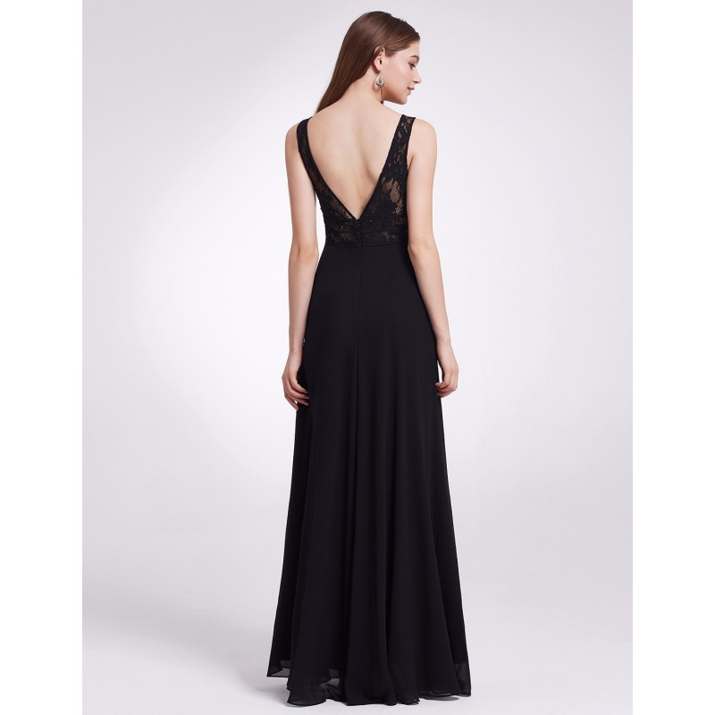 Krásné dlouhé černé společenské šaty na ramínka. Šaty mají průstřihy, jsou šité na zip a vyztužné.