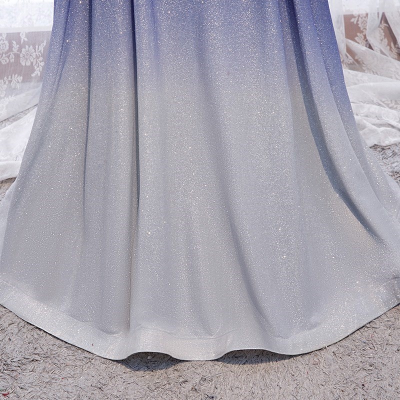 Nádherné ombre dlouhé plesové šaty na maturitní ples nebo jinou významnou společenskou událost. Šaty jsou vyztužené a zezadu šité na šněrování.