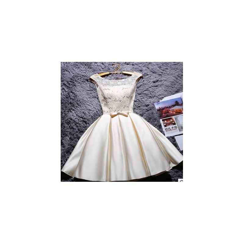 Krásné krémové společenské šaty do tanečních nebo na ples. Šaty mají krajkový živůtek, který je zdoben flitry a saténovou sukni. Šaty jsou vyztužené a zezadu šité na šněrování. Vhodné i jako svatební šaty na převlečení.