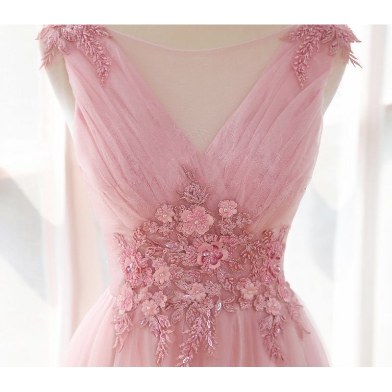 Světle růžové plesové šaty na maturitní ples. Šaty jsou vyztužené a zezadu šité na šněrování a zip. Model z nové kolekce 2021.
