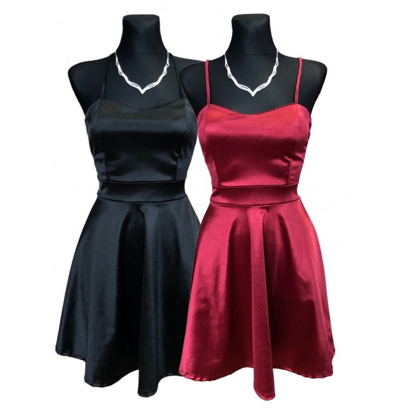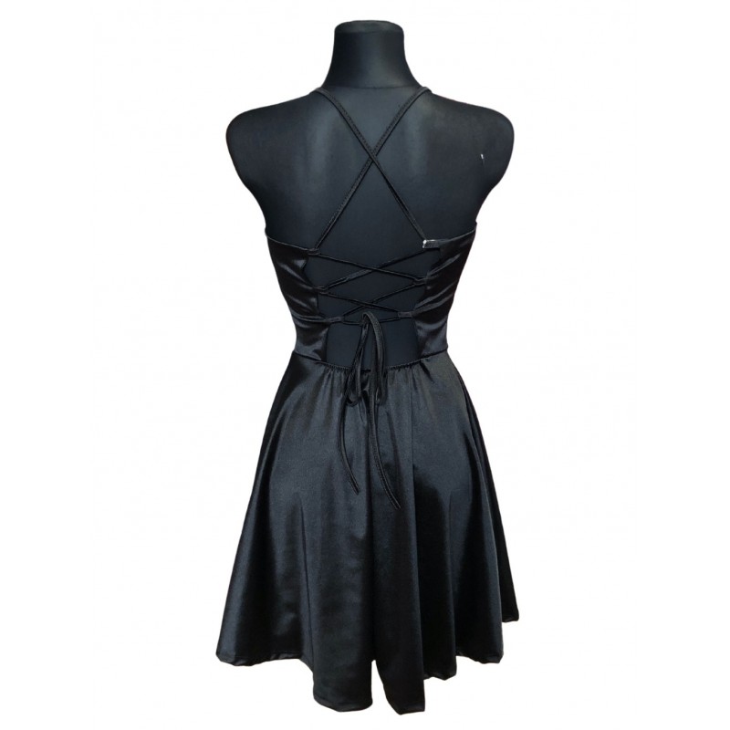 Luxusní krátké společenské šaty ušité z lesklého saténu. Nová kolekce 2024. Šaty jsou zezadu na šněrování a jsou lehce elastické. Krásně sedí. Délka ramínek závisí na utažení šněrování.